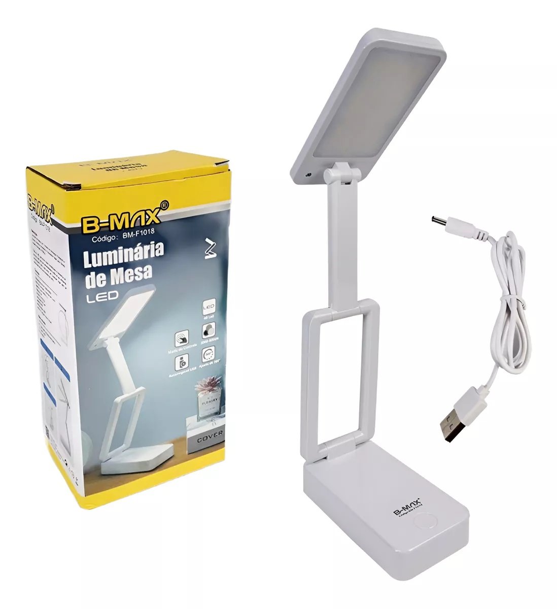Acompanha cabo USB para carregamento e uma bateria, oferecendo praticidade e mobilidade para o usuário. Com seu design elegante e funcionalidades versáteis, a Luminária de Mesa B-Max BM-F1018 é uma excelente escolha para quem busca eficiência e estilo em um único produto.
